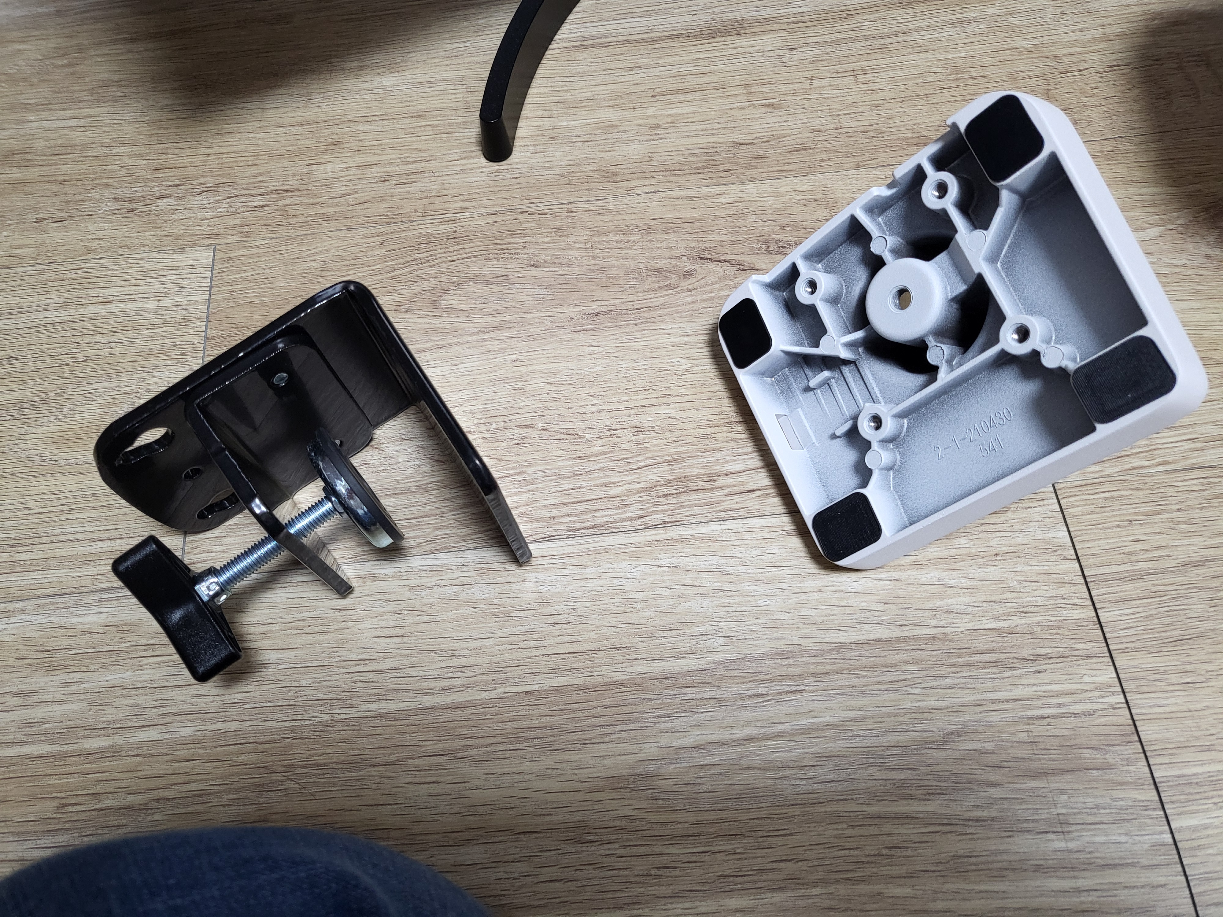 클램프를 책상 끝 쪽에 걸치고, 책상 밑에서 클램프를 조여 고정해주면 됩니다.