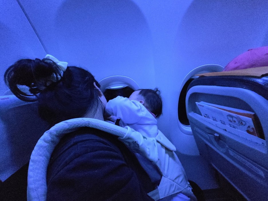 낮잠시간을 컨트롤해서 비행기 안에서 딥슬립 하길 바랬 것만 휴게소에서 실컷 놀고 유모차에서 몇십분 주무시더니 초고속충전이 되셔서 비행기에선 엄청 기운찼습니다.