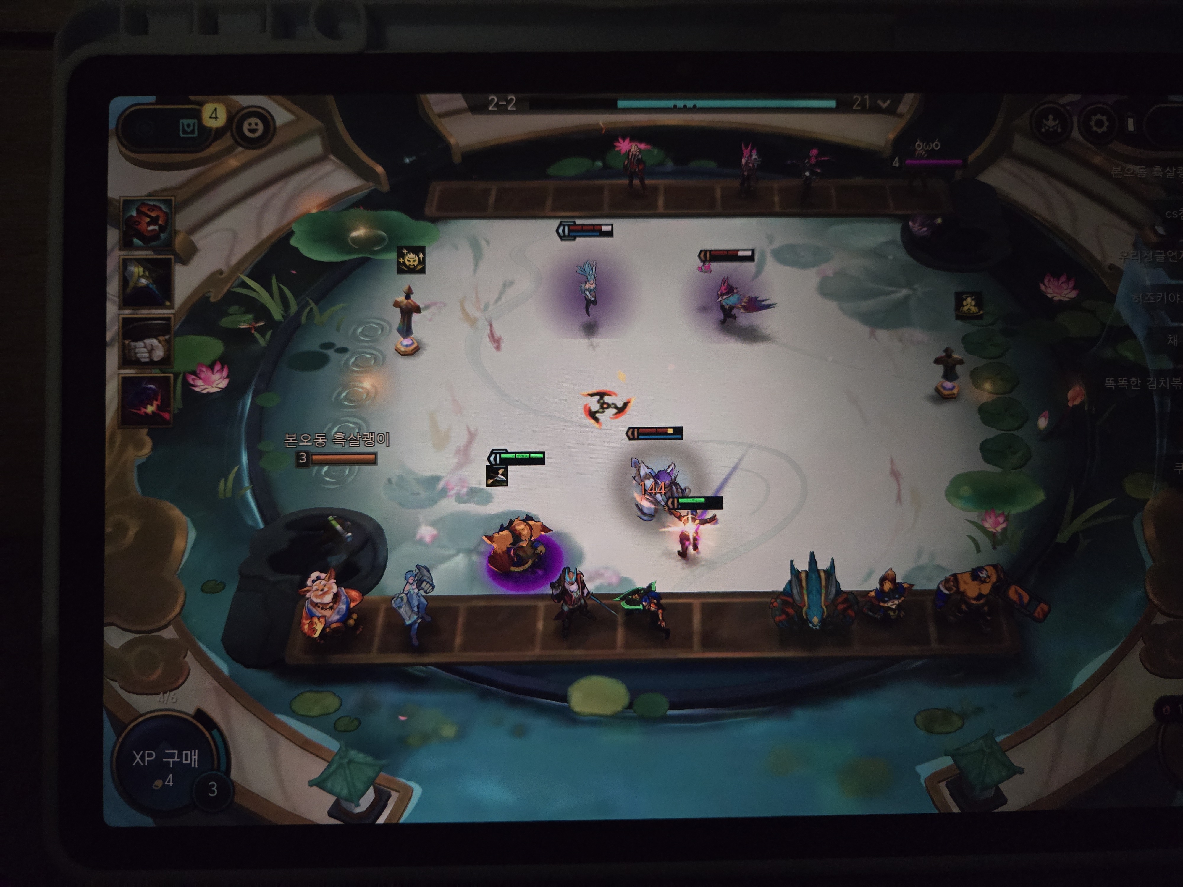 태블릿을 구매한 기념으로 안 하던 롤체를 해봤는데요. 챔피언이 많아지면 프레임이 끊기는 등의 문제는 있지만, 플레이를 하는데는 전혀 지장이 없었습니다.